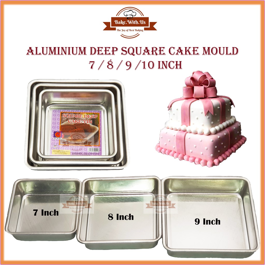 Aluminium Deep Square Cake Mould 7 8 9 10 Inch Loyang Kek Segi Empat 4 Size